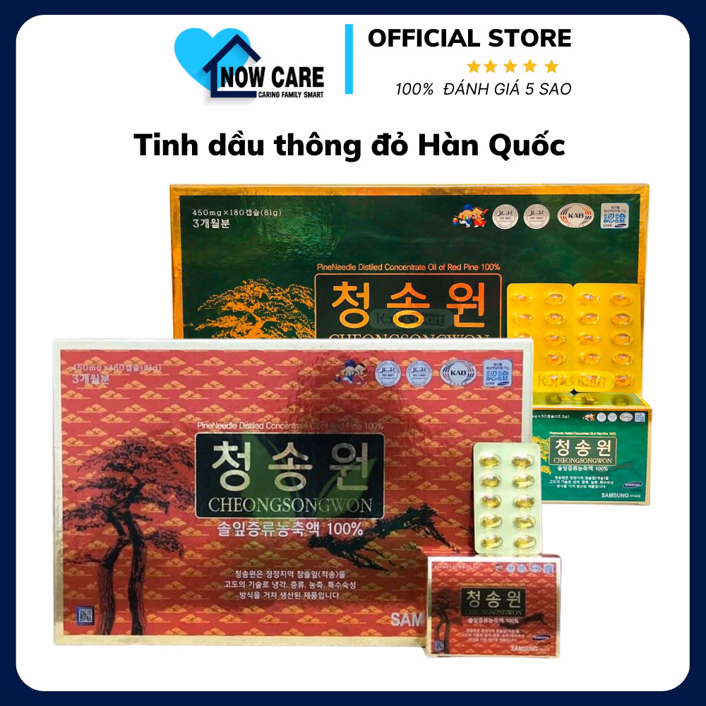 Tinh dầu thông đỏ Cheongsongwon hộp xanh được ưa chuộng hàng đầu tại Hàn Quốc. Thực phẩm chức năng này chiết xuất 100% tinh dầu cây thông đỏ quý hiếm giúp hỗ trợ cho người bị ung thư, giảm mỡ máu, cao huyết áp, tim mạch, hỗ trợ gan thải độc, tăng cường sinh lý, ổn định nội tiết, giảm nguy cơ lão hóa,…