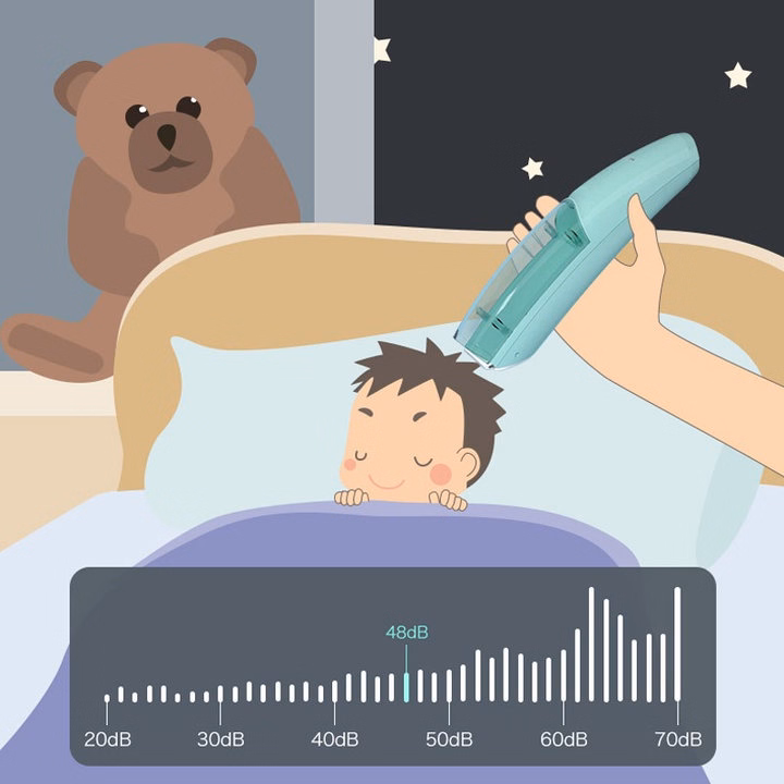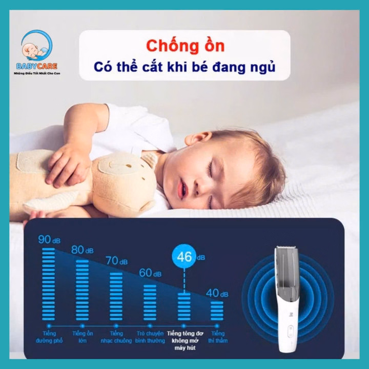 Động cơ vận hành của máy rất êm ái, rung chấn nhỏ, tiếng ồn thấp giúp bé sẽ không có cảm giác mẹ đang cắt tóc nên bé sẽ ngồi yên trong suốt quá trình cắt tóc