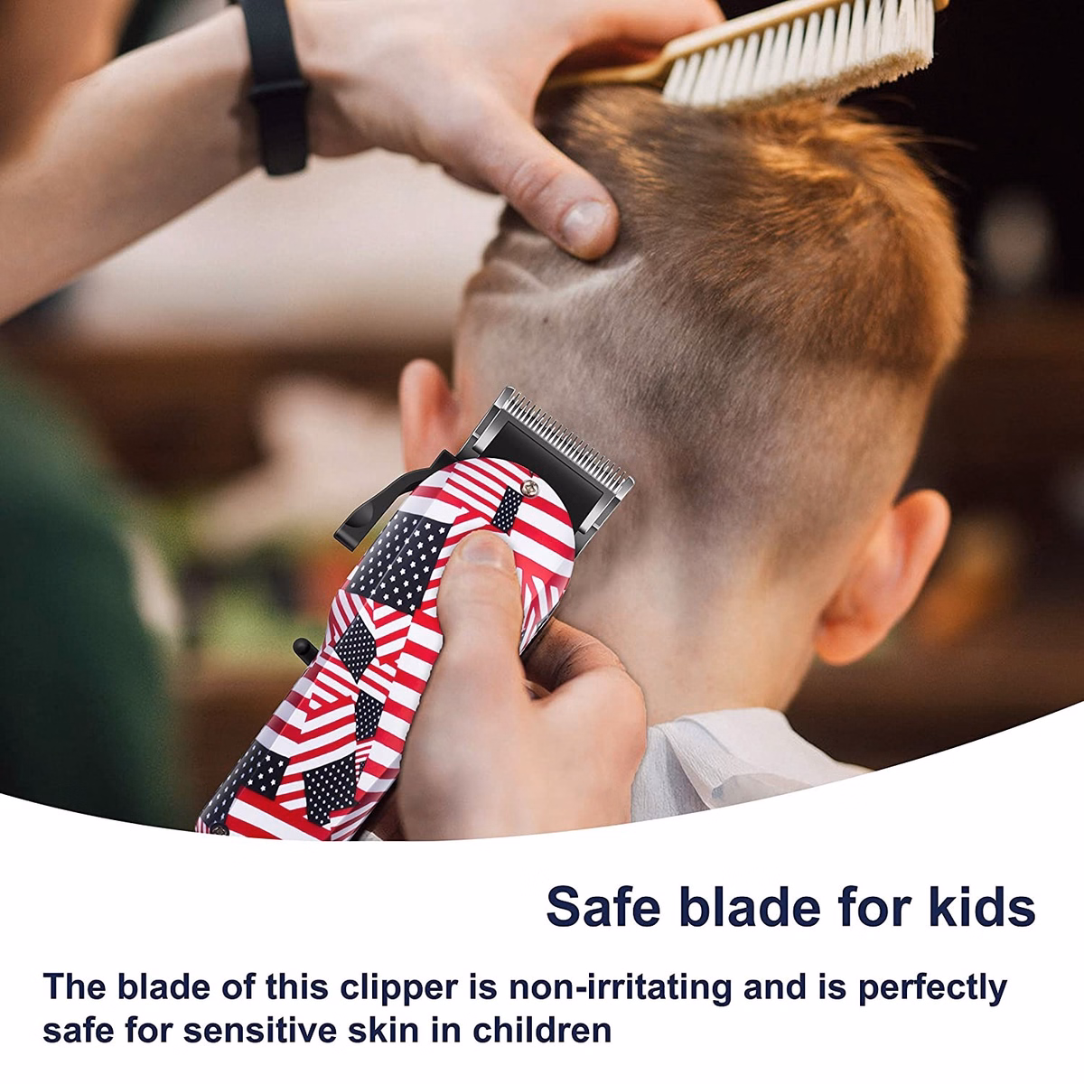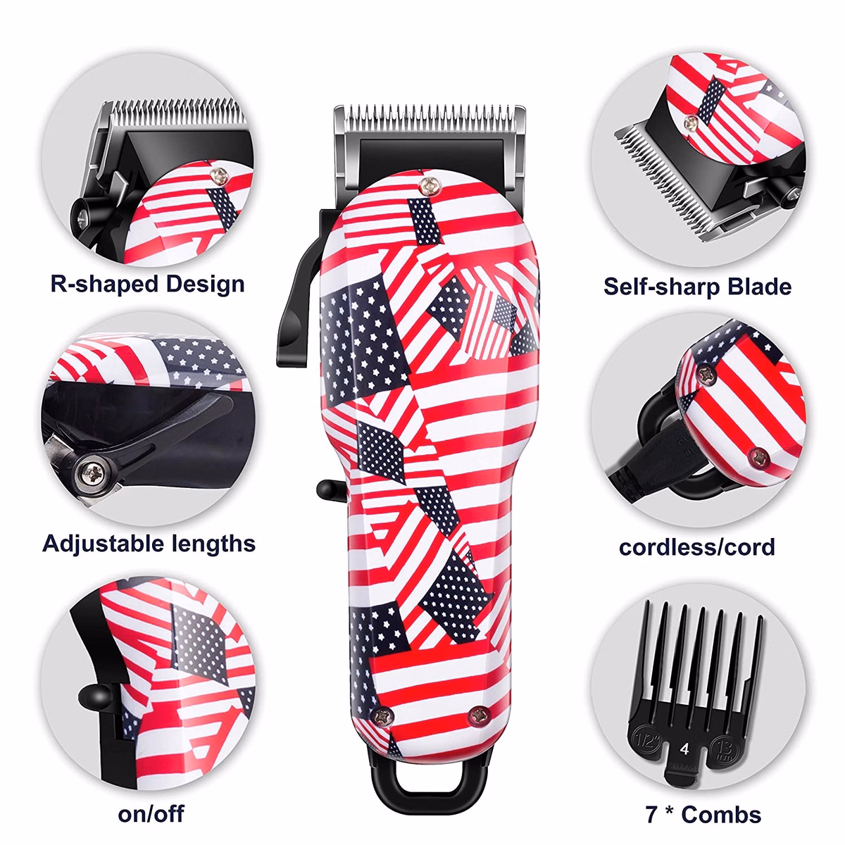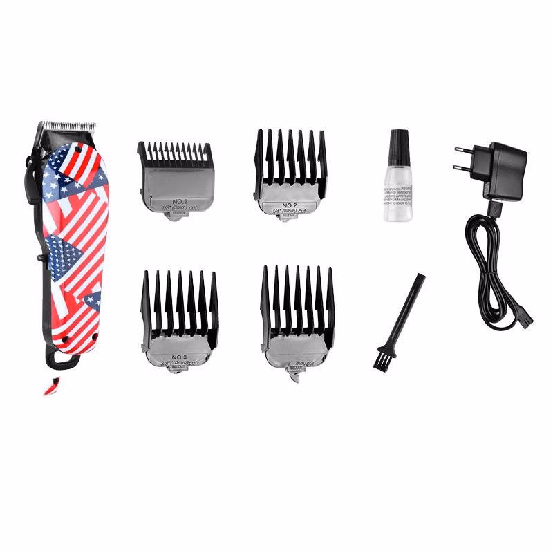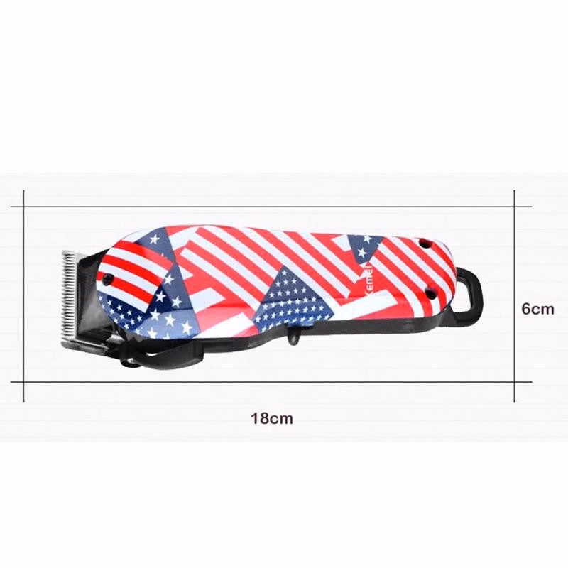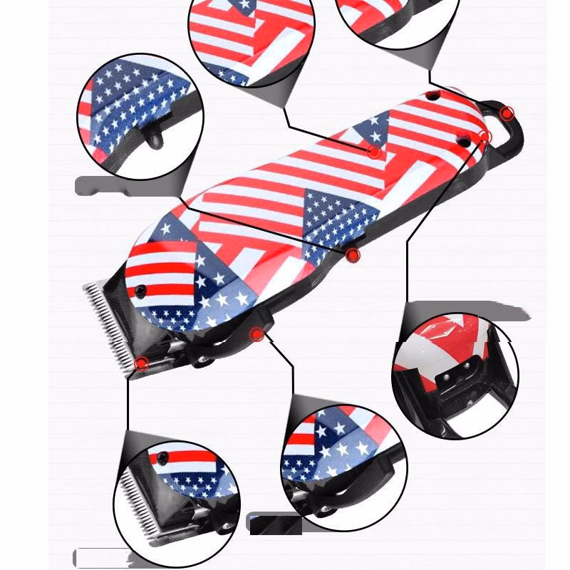 – Tông đơ có thiết kế nhỏ nhắn với họa tiết cờ Mỹ xanh và đỏ trẻ trung mạnh mẽ.