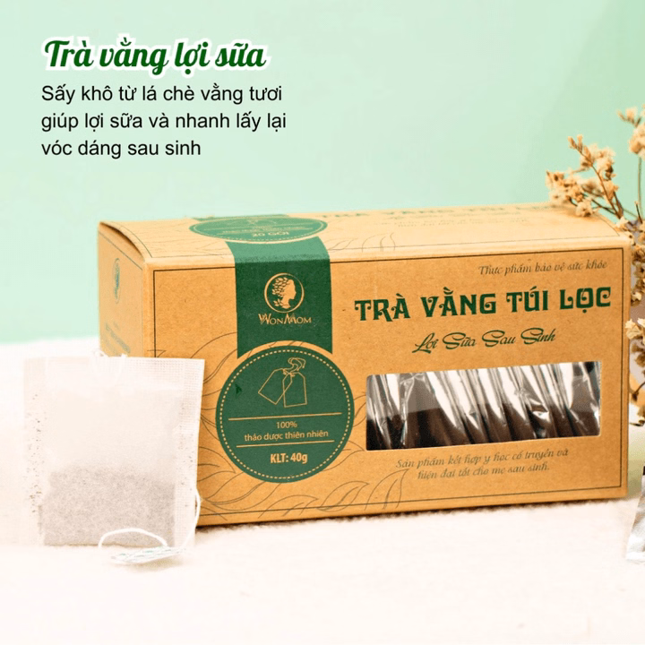 Trà vằng túi lọc lợi sữa, hỗ trợ giảm cân tự nhiên Wonmom là 1 trong số những sản phẩm được yêu thích nhất của các mẹ bỉm sữa với thành phần 100% lá chè vằng tự nhiên, được sản xuất theo dây chuyền khép kín, đảm bảo chất lượng.