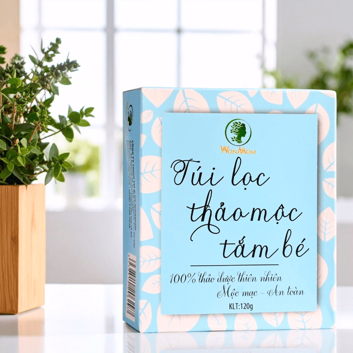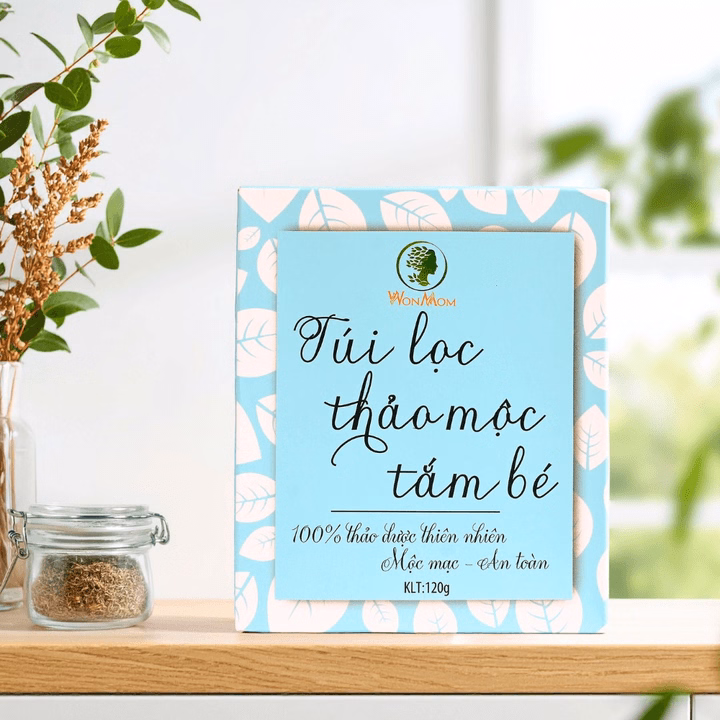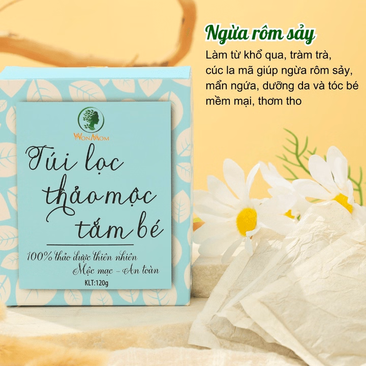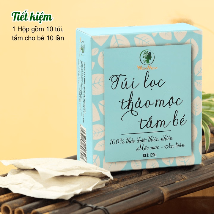 Túi lọc thảo mộc tắm bé, ngăn ngừa rôm sảy Wonmom là 1 trong số những sản phẩm được yêu thích nhất của các mẹ bỉm sữa với thành phần 100% tự nhiên: ngũ sắc, kinh giới, kim ngân, tía tô, trà xanh, ngải cứu, sài đất, lá tràm và một số thảo dược khác.