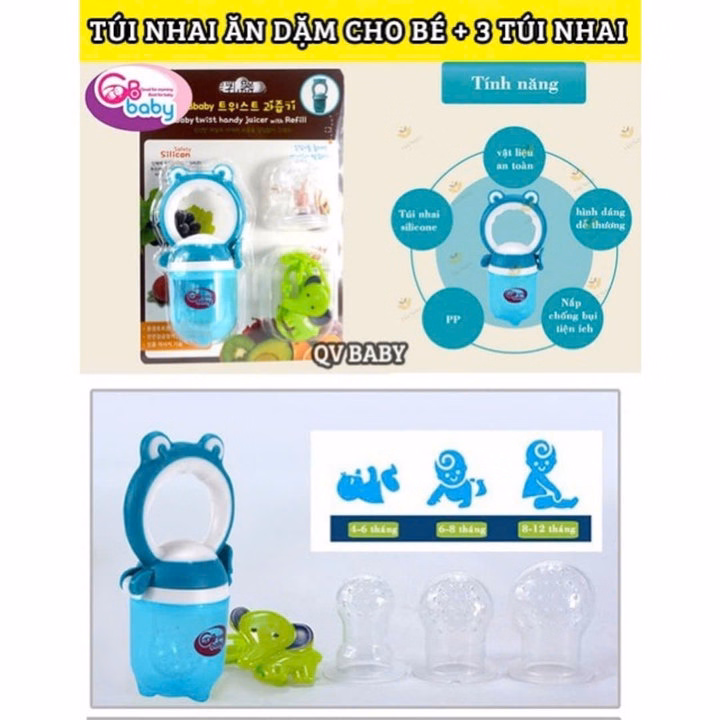 Túi Nhai Ăn Dặm Gb Baby Chống Hóc Kèm Dây Đeo & Núm Ăn Dặm Cao Cấp 3 Giai Đoạn Cho Bé L086