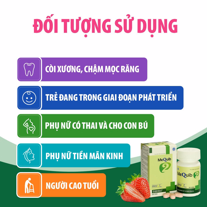 Giảm nguy cơ và cải thiện tình trạng chậm lớn ở trẻ em, thiếu calci ở phụ nữ có thai và cho con bú, loãng xương ở người cao tuổi.