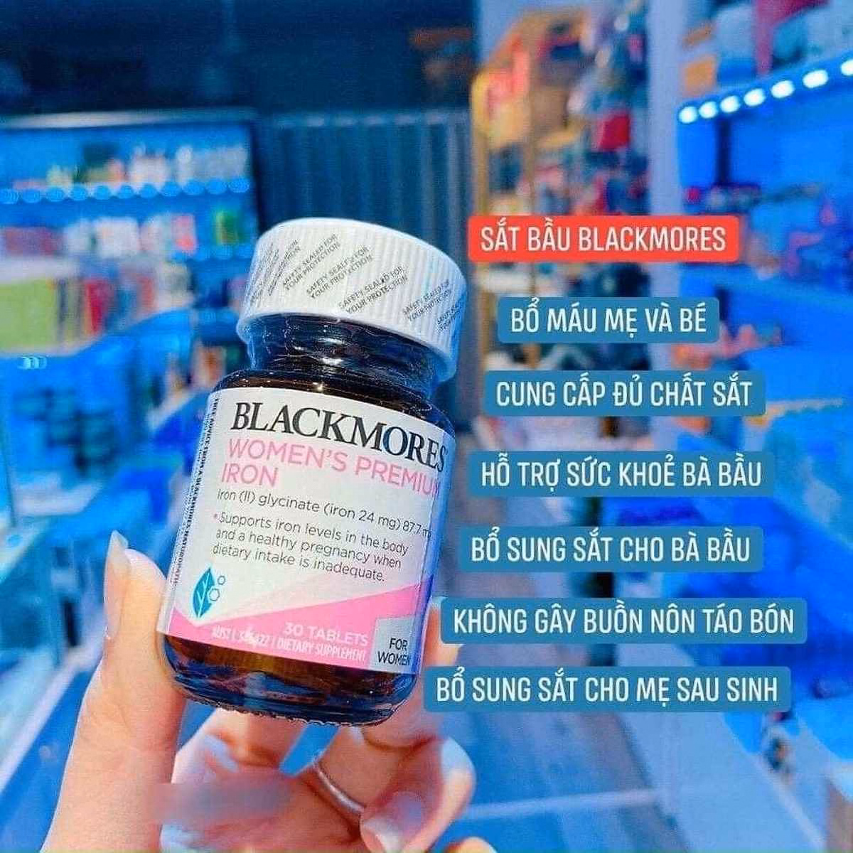 Viên sắt cho bà bầu Blackmores Pregnancy Iron Úc lọ 30 viên bổ sung sắt giúp cải thiện tình trạng thiếu máu trong thời kỳ mang thai, sau khi sinh hoặc người bị thiếu máu sau phẫu thuật, chấn thương,… mà không gây táo bón, kích ứng dạ dày, an toàn cho bà bầu trong suốt quá trình mang thai.