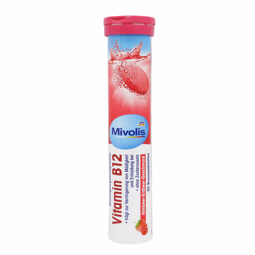 Viên sủi Mivolis Vitamin B12 là một chất bổ sung cho chế độ ăn uống có chứa vitamin B12 với hương vị dâu tây mâm xôi mà không cần thêm đường. Vitamin B12 góp phần làm giảm mệt mỏi và cũng hỗ trợ hoạt động bình thường của quá trình trao đổi chất, hỗ trợ hệ thần kinh giúp tăng cường trí nhớ, bảo vệ tim mạch. Sản phẩm thuần chay.