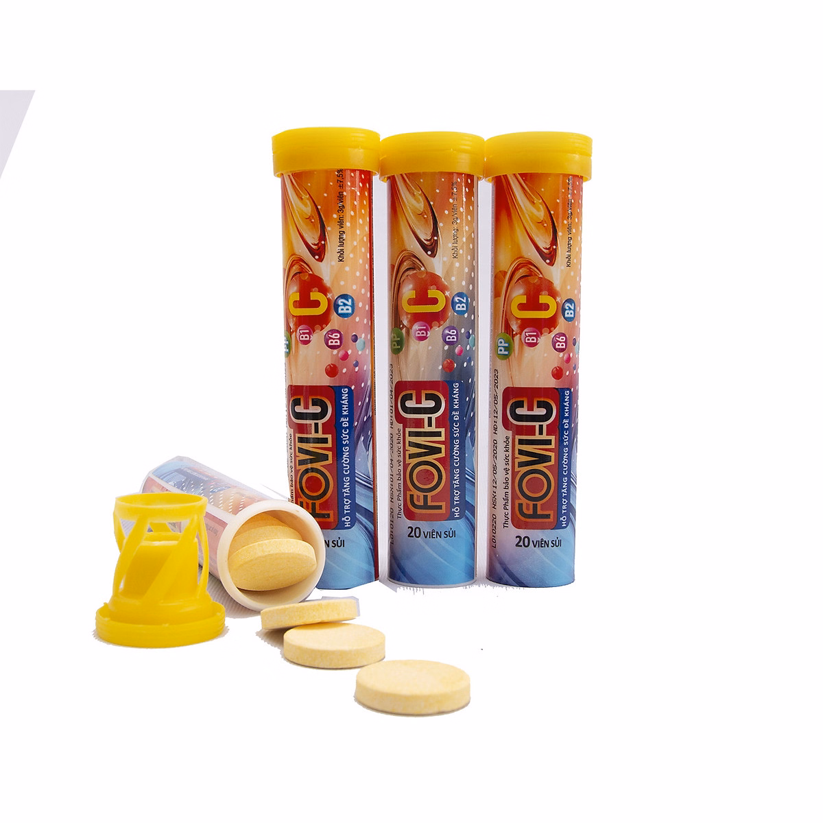 Viên sủi bổ sung vitamin C – Fovi-C với hàm lượng vitamin C trong mỗi viên sủi lên đến 500mg giúp cung cấp vitamin C cùng các loại vitamin khác cho cơ thể giúp bồi bổ và nâng cao sức đề kháng của cơ thể.