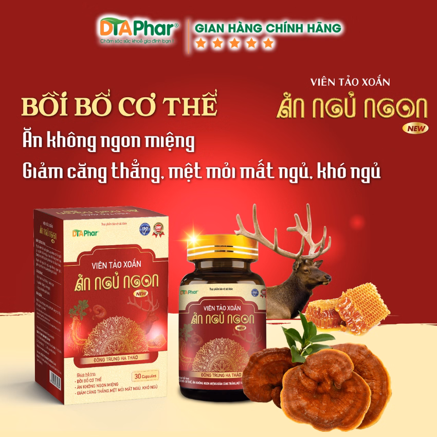 Viên Uống Ăn Ngủ Ngon Hỗ Trợ Giảm Căng Thẳng Mệt Mỏi Do Mất Ngủ Ăn Không Ngon Hộp 30 Viên