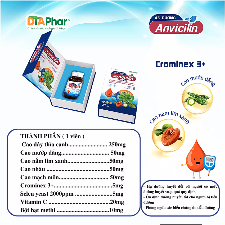 Viên Uống Anvicilin Hỗ Trợ Ổn Định Đường Huyết Cho Người Bị Tiểu Đường Hộp 30 Viên