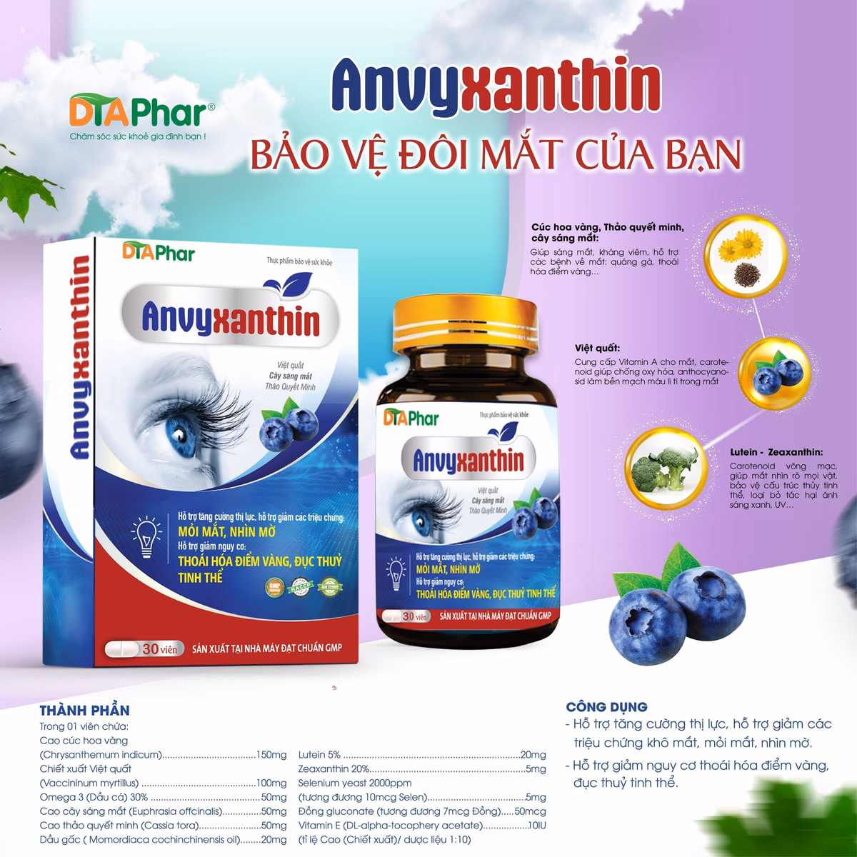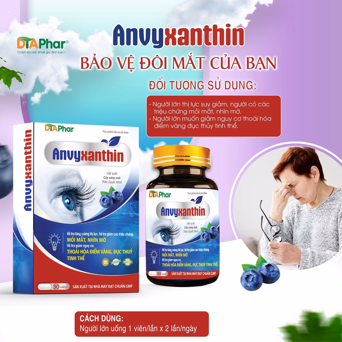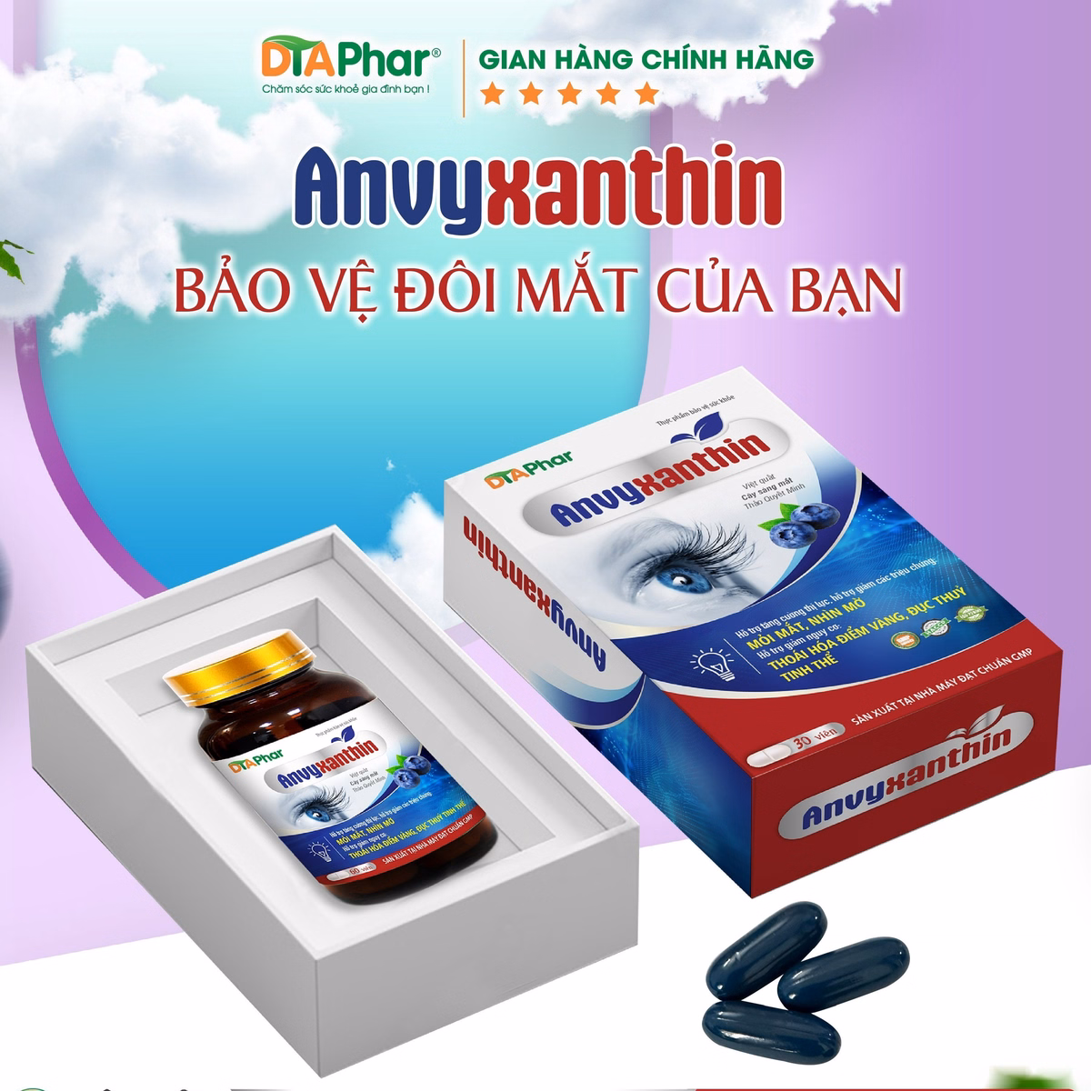 Viên Uống Anvyxanthin Hỗ Trợ Tăng Cường Thị Lực Giảm Các Triệu Chứng Khô Mắt Mỏi Mắt Nhìn Mờ Hộp 30 Viên