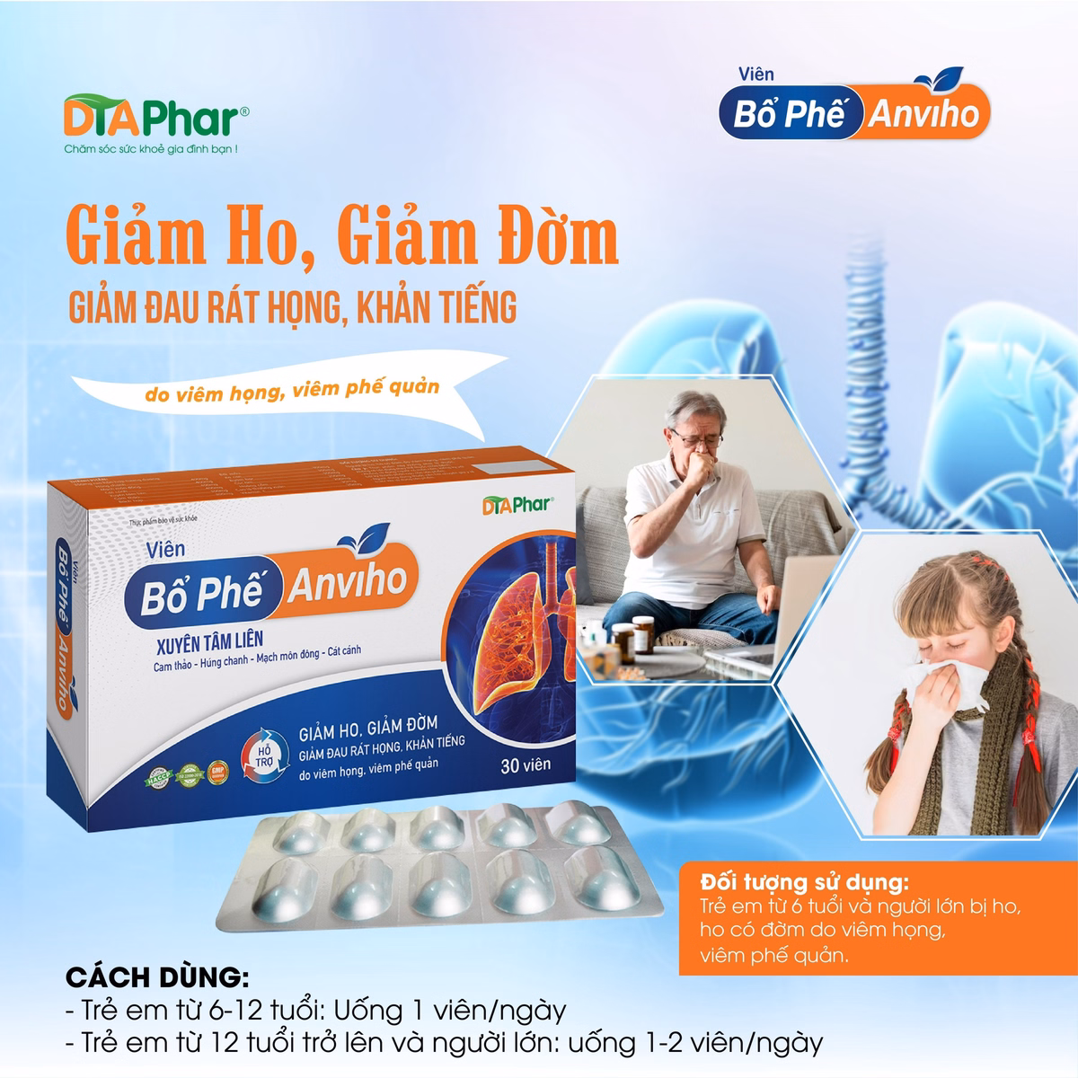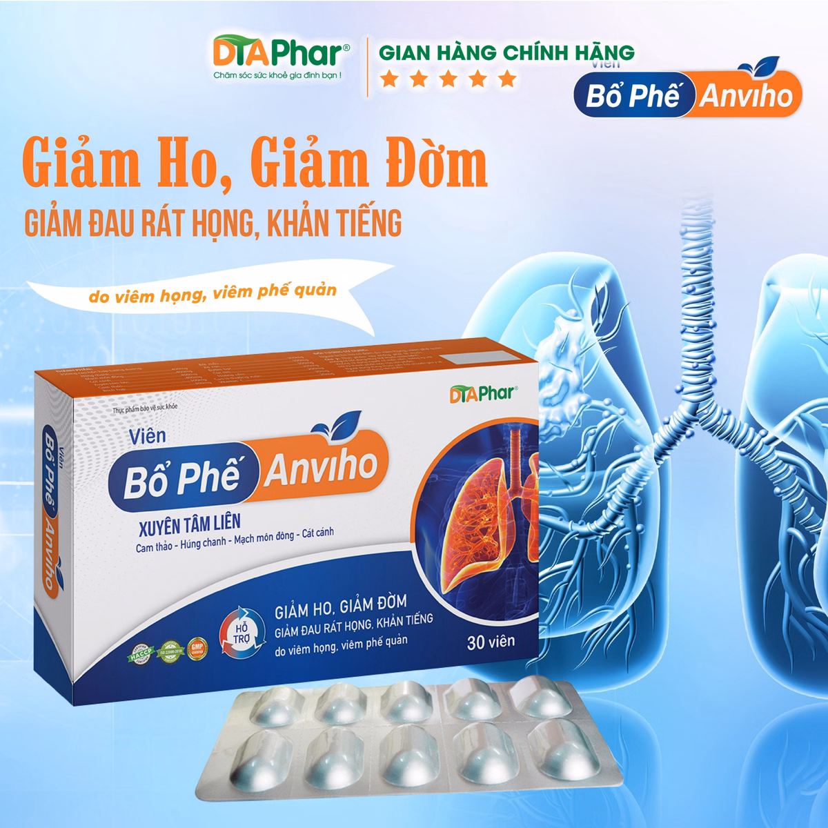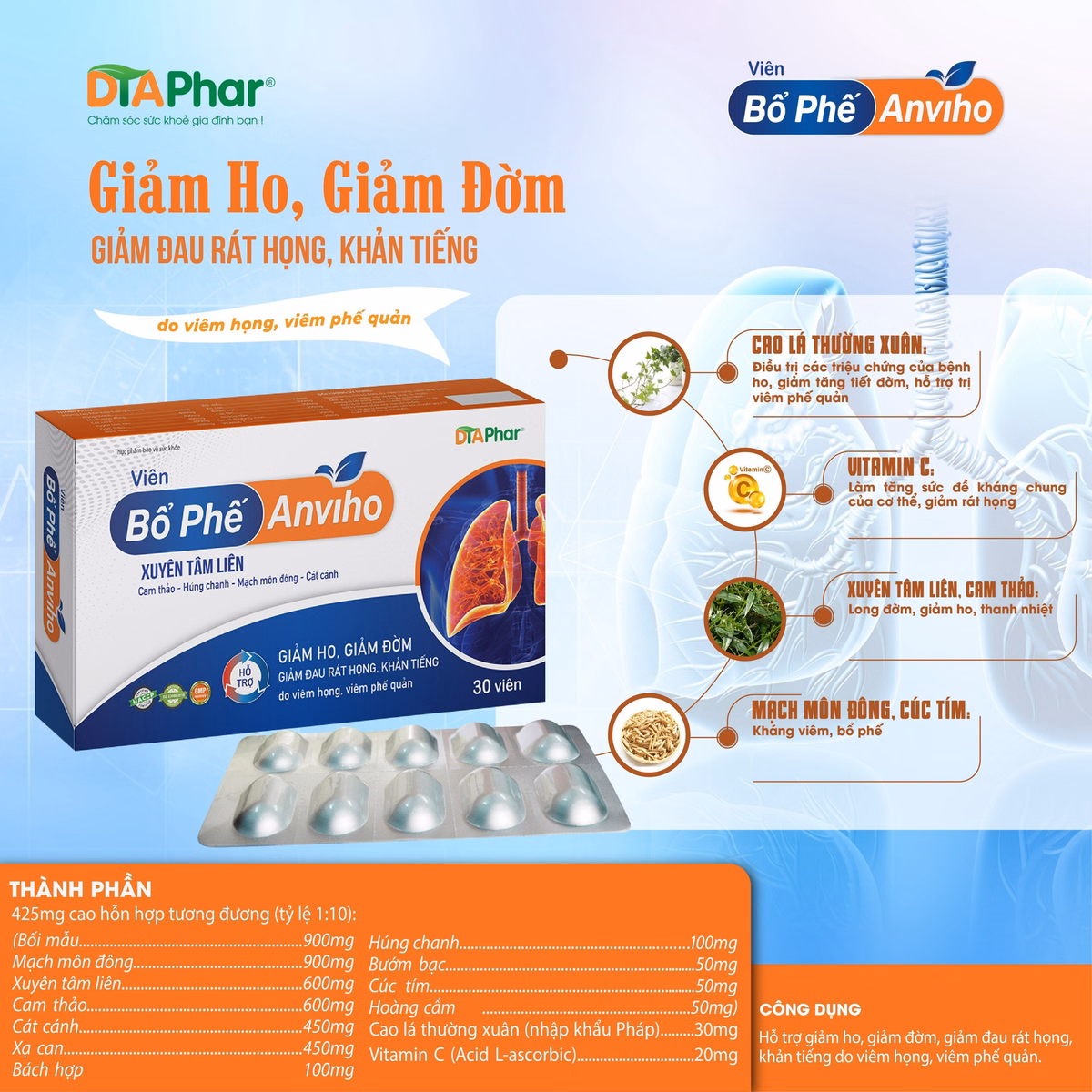 Viên Uống Bổ Phế Anvio Xuyên Tâm Liên Hỗ Trợ Giảm Ho Giảm Đờm Giảm Đau Rát Họng Khản Tiếng Do Viêm Họng Hộp 30 Viên