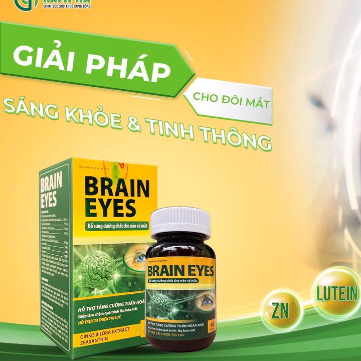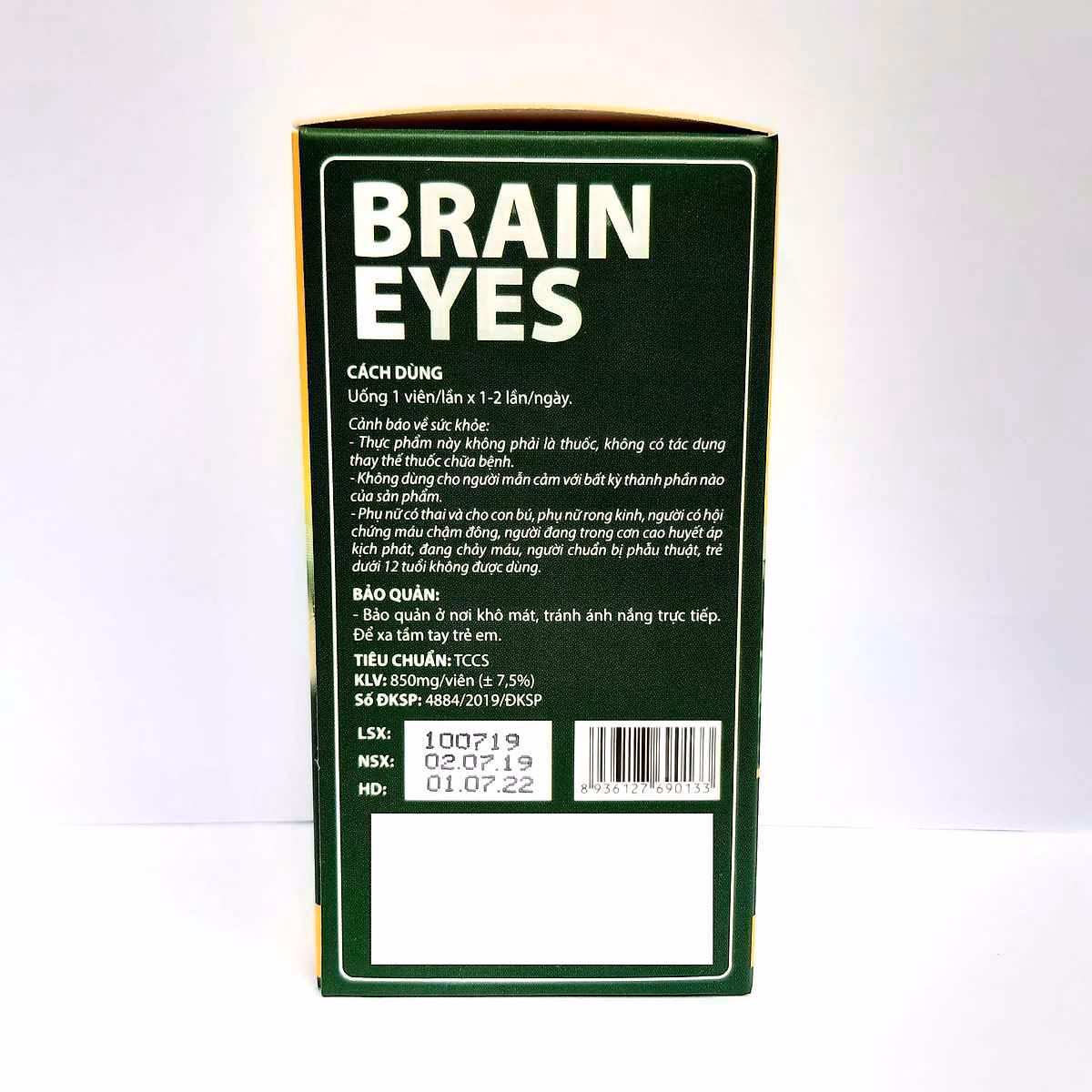 Brain Eyes được chiết xuất từ cao chế từ lá cây bạch quả (ginkgo biloba) đã được tiêu chuẩn hóa, Extract of Ginkgo biloba kết hợp Choline bitartrate và các thành phần khác bổ trợ cho não, mắt cải thiện thị lực.