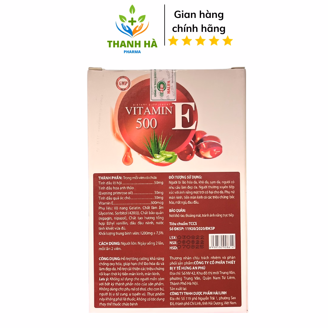 Tên sản phẩm: Viên Uống Đẹp Da Vitamin E 500 – Halifa