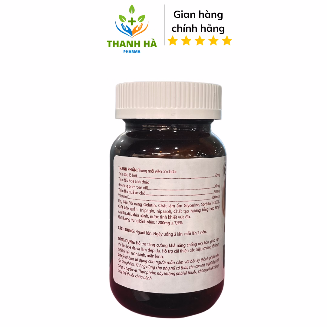 Thành phần: Tinh dầu lô hội, tinh dầu hoa anh thảo, tinh dầu quả óc chó, Vitamin E 500mcg; Phụ liệu: Vỏ nang Gelatin, chất làm ẩm Glycerine, Sorbitol (420(i)), chất bảo quản (nipagin, nipazol), chất tạo hương tổng hợp Ethyl vanillin, dầu đậu nành, nước tinh khiết vừa đủ