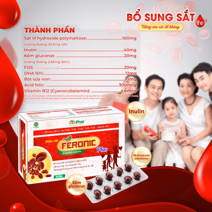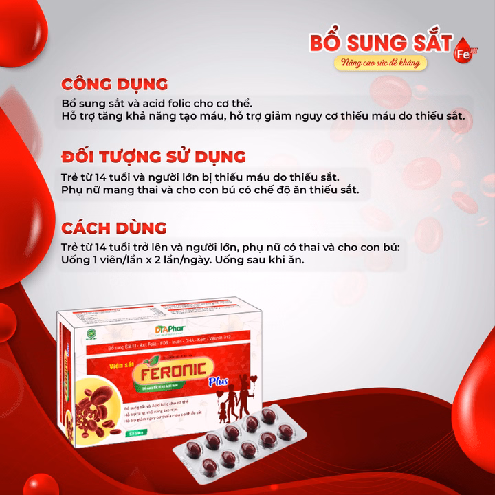 Viên Uống Feronic Plus Hỗ Trợ Bổ Sung Sắt Và Acid Folic Cho Cơ Thể Tặng Khả Năng Tạo Máu Giảm Nguy Cơ Thiếu Máu Hộp 80 Viên