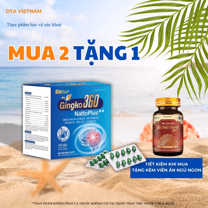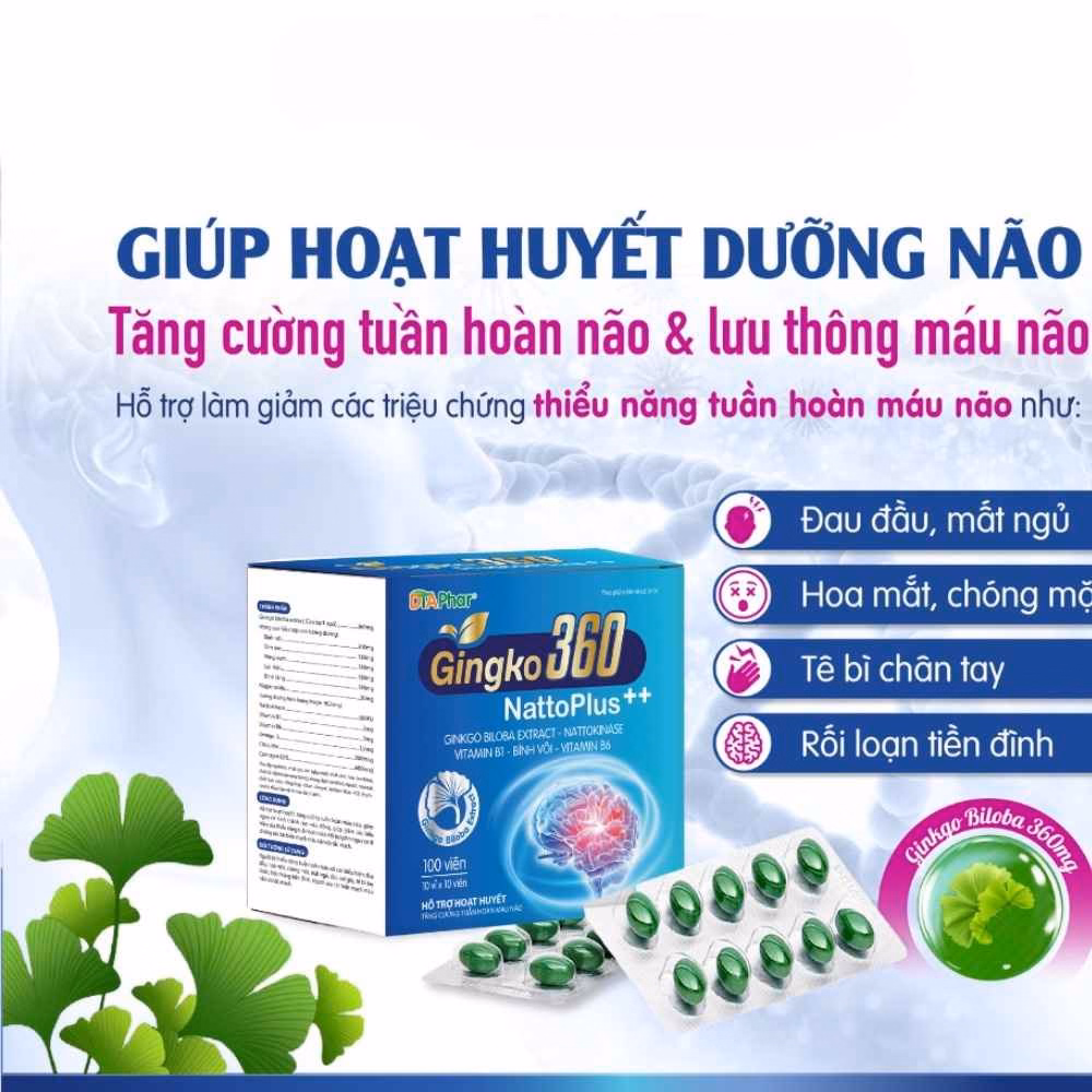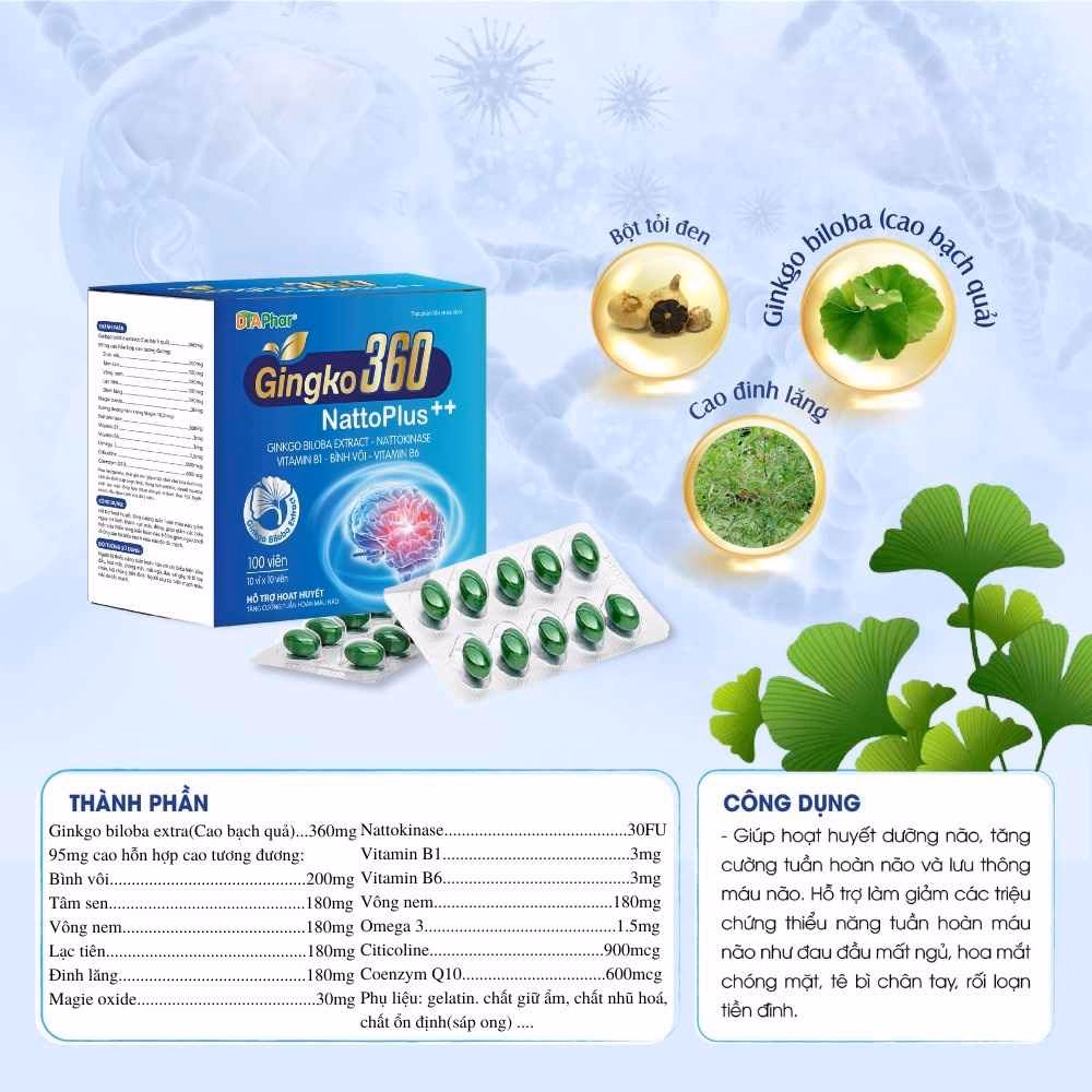 Viên Uống Gingko 360 Natto Plus++ Hỗ Trợ Hoạt Huyết Dưỡng Não Tăng Cường Khả Năng Tuần Hoàn Lưu Thông Máu Não Hộp 100 Viên