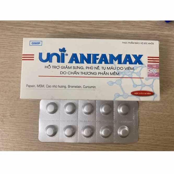 Tên sản phẩm: Viên Uống Hỗ Trợ Làm Giảm Sưng, Phù Nề, Tụ Máu Do Viêm, Do Chấn Thương Phần Mềm Anfamax – Unipharma