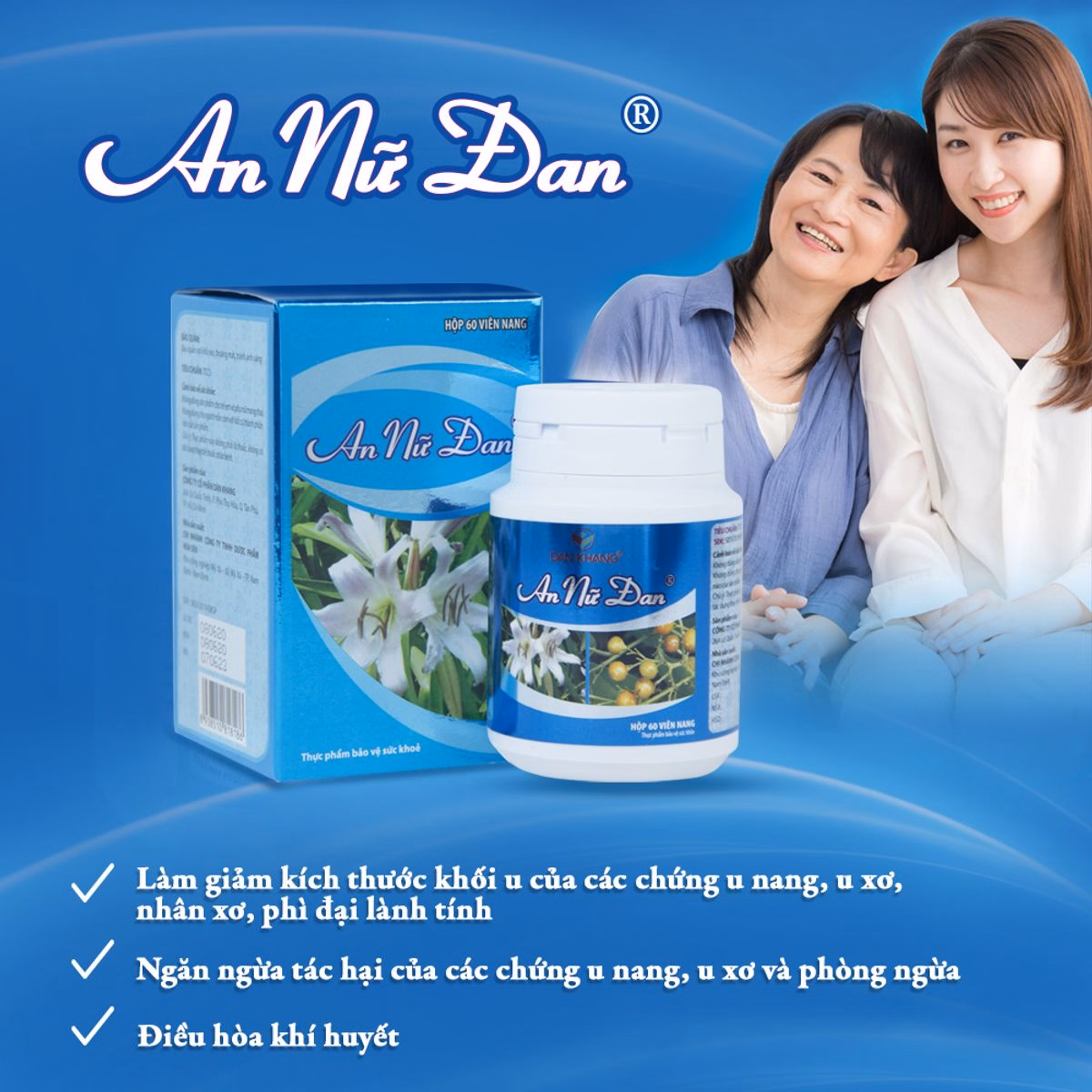 Viên uống hỗ trợ phòng ngừa u xơ u nang An Nữ Đan – Dân Khang là một trong những sản phẩm đặc trị u xơ tử cung, u nang buồng trứng, đa nang, nhân xơ… được tin dùng và có tác dụng vượt trội nhất hiện nay. Sản phẩm có công thức vượt trội, kết hợp giữa những thành phần quý từ thiên nhiên như Trinh nữ hoàng cung, Linh chi, Xạ đen, Tam thất… giúp giảm kích thước khối u trong thời gian ngắn, điều hòa kinh nguyệt, cải thiện sức đề kháng và tăng cường lưu thông khí huyết.