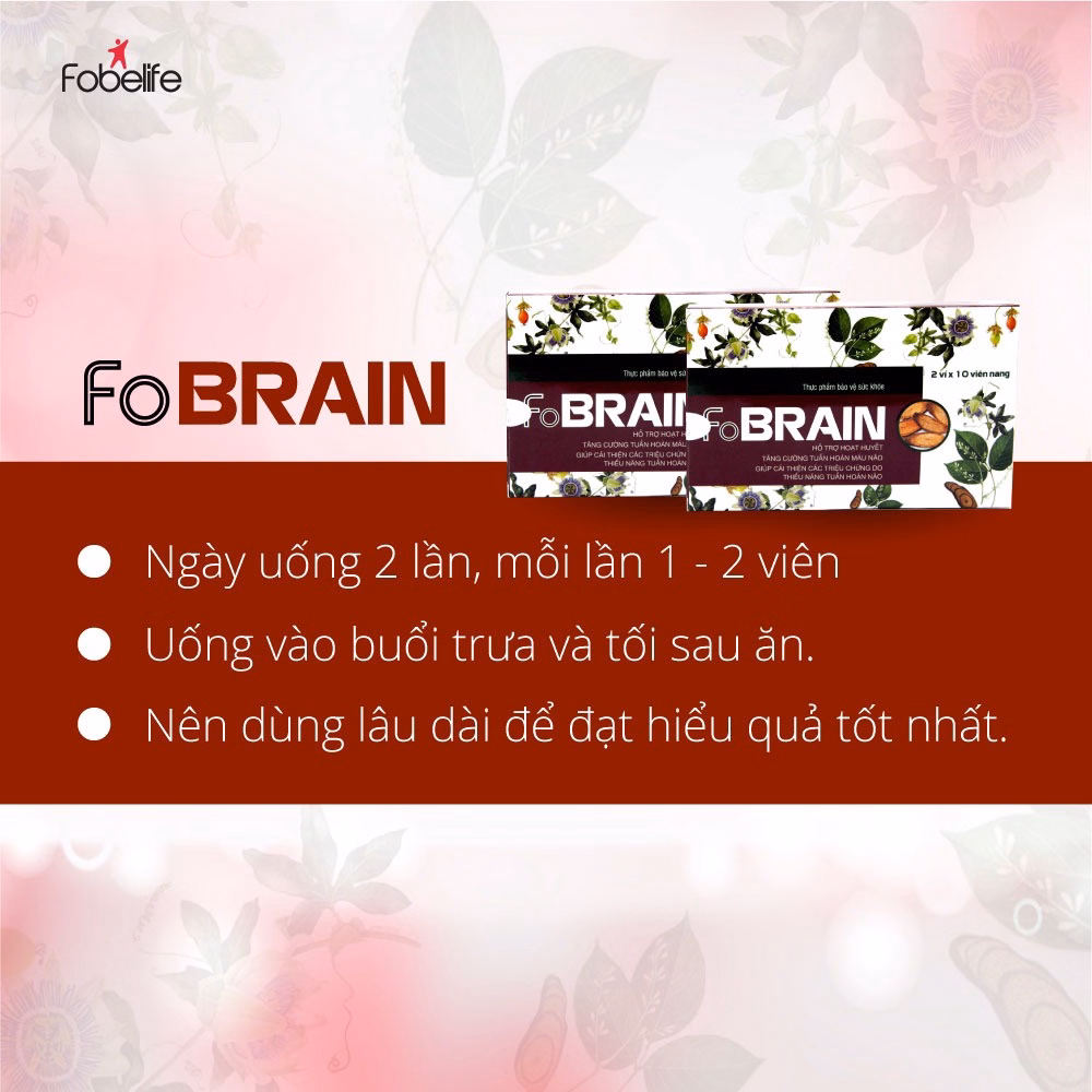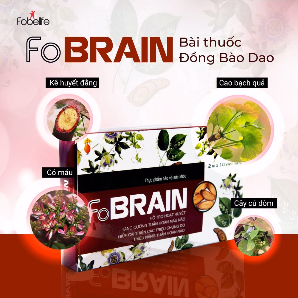 Với bài thuốc cổ phương của đồng bào Dao – Ba Vì, Hà Nội chứa các loại thảo dược hoàn toàn từ tự nhiên an toàn, hiệu quả cho người sử dụng. Fobrain có tác dụng hỗ trợ hoạt huyết, giúp lưu thông máu não và đặc biệt tốt cho người bị rối loạn tiền đình.