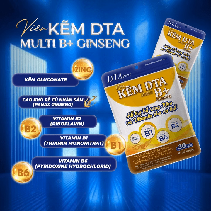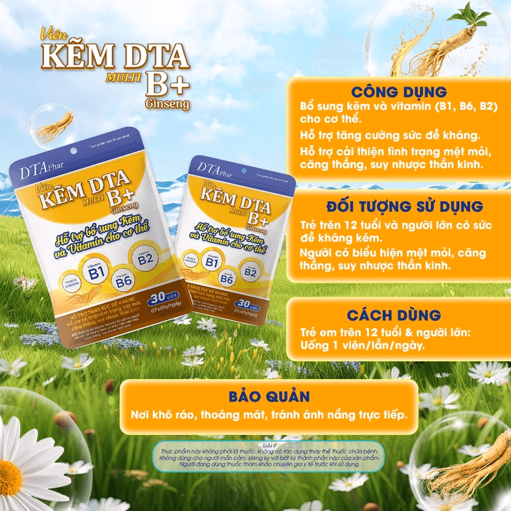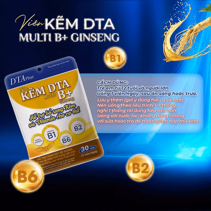 Viên Uống Kẽm Kết Hợp Vitamin Nhóm B Dta – Hỗ Trợ Đề Kháng, Giảm Mệt Mỏi, Cải Thiện Căng Thẳng, Suy Nhược 30 Ngày Và 60 Ngày