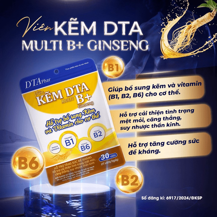 Sản phẩm bổ sung Kẽm nguyên tố 21,4mg kết hợp với Vitamin B1, B2, B6 và Cao khô Nhân sâm – hỗ trợ tăng đề kháng, giảm mệt mỏi, căng thẳng hiệu quả.