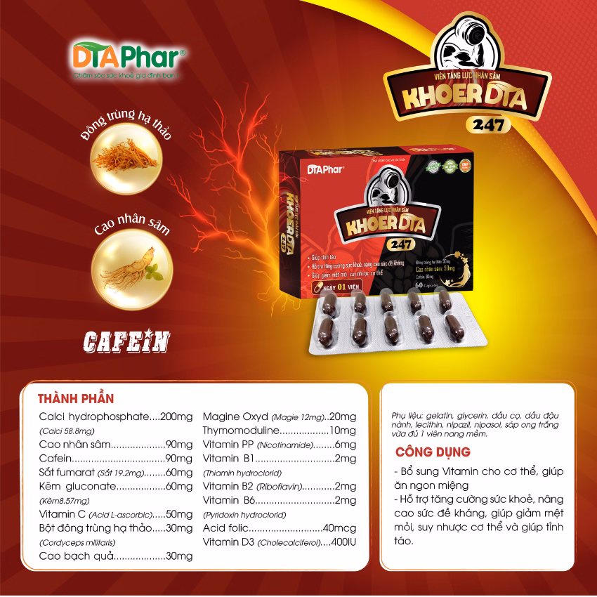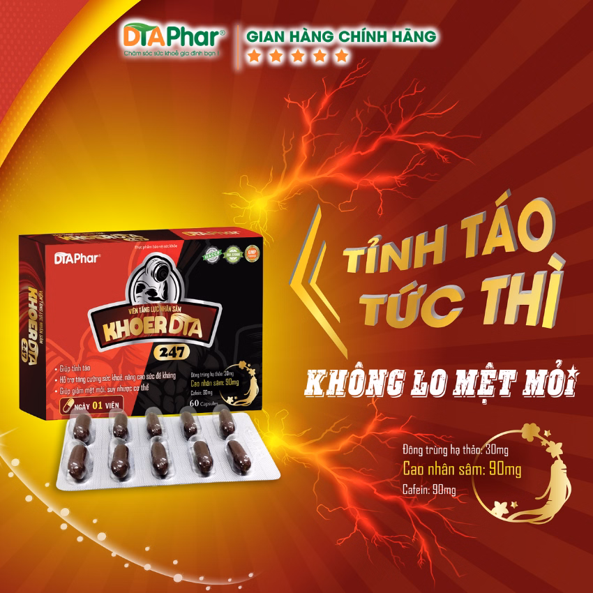 Viên Uống Khoer Dta 247 Hỗ Trợ Tăng Lực Tỉnh Táo Tức Thì Bồi Bổ Cơ Thể Hộp 60 Viên