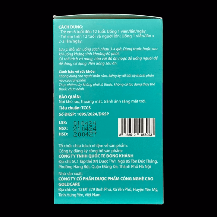 – Trẻ em 6 tuổi đến 12 tuổi: Uống 1 viên/lần/ngày.