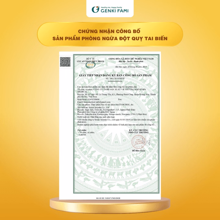 Tên sản phẩm: Viên Uống Ngăn Ngừa Đột Quỵ Và Bổ Não Nattou Ichou – Genki Fami