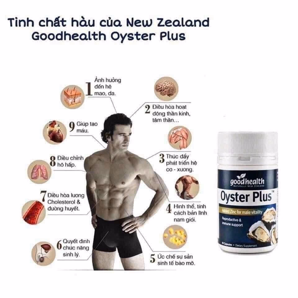 Viên uống tinh chất hàu Oyster Plus Goodhealth được điều chế để tăng cường chức năng sinh lý nam, tăng ham muốn, đồng thời hỗ trợ điều trị rối loạn cương dương, xuất tinh sớm, tăng số lượng và chất lượng tinh trùng, giảm nguy cơ vô sinh. Sản phẩm không có tác dụng phụ, an toàn tuyệt đối cho sức khỏe đã được lưu thông rộng rãi trên thị trường.