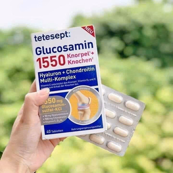 Tetesept Glucosamin 1550 là sản phẩm của thương hiệu Tetesept được sản xuất tại Đức. Đây là một loại thực phẩm chức năng giúp bồi bổ xương khớp được sử dụng khá phổ biến tại Đức. Tác dụng giảm đau xương khớp, đặc biệt là khớp đầu gối. Đồng thời, tăng cường sức khỏe hệ xương, ngăn ngừa, cải thiện viêm khớp, thoái hóa khớp.