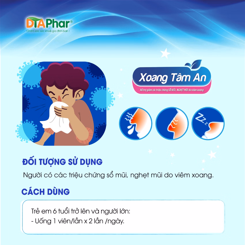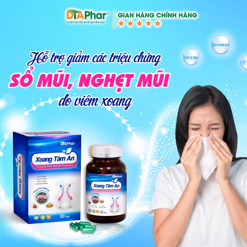 Viên Uống Xoang Tâm An Hỗ Trợ Giảm Cái Triệu Chứng Sổ Mũi Nghẹt Mũi Do Viêm Xoang Viêm Mũi Dị Ứng Hộp 30 Viên