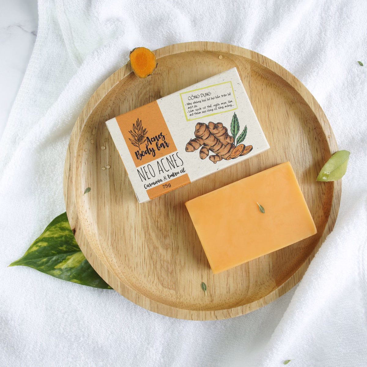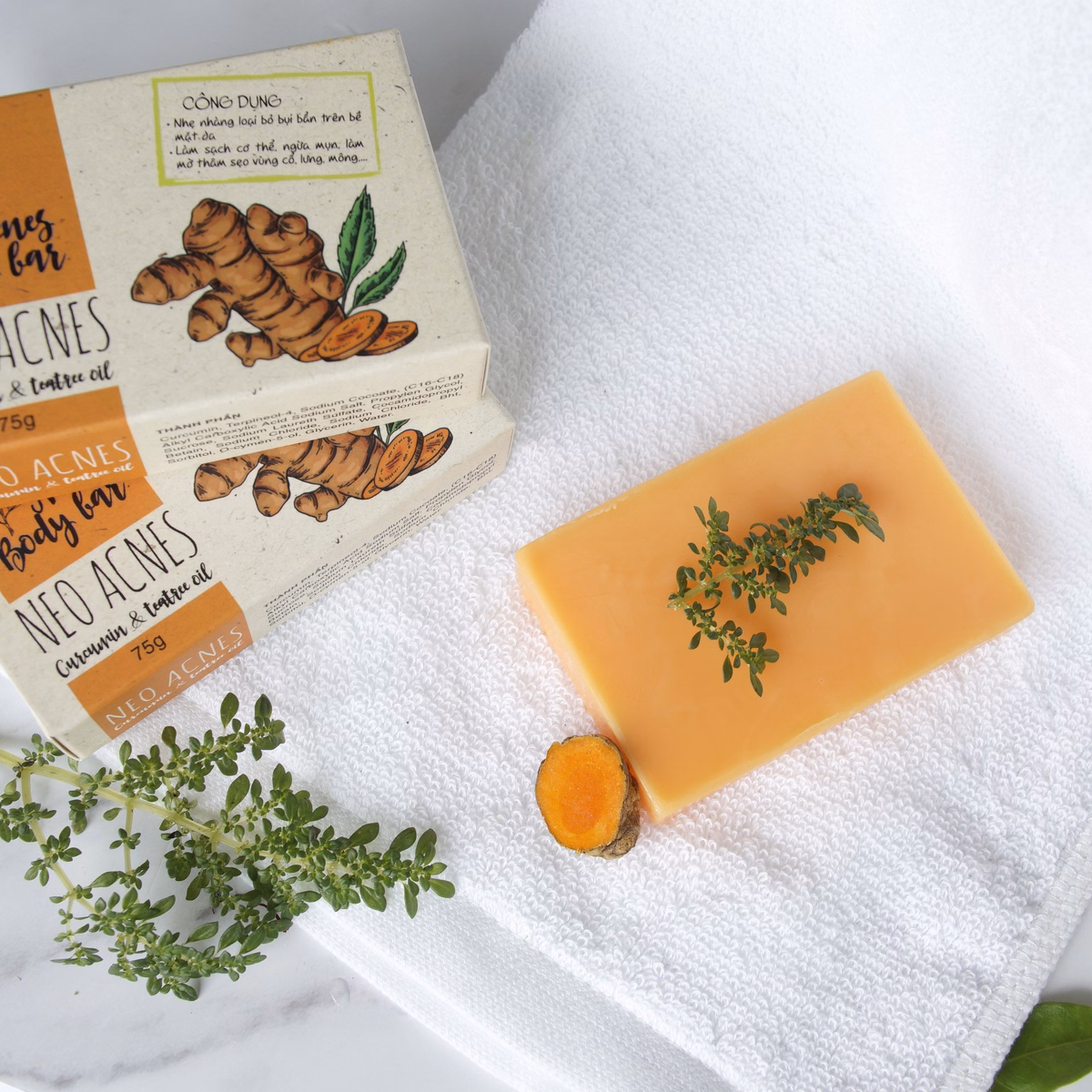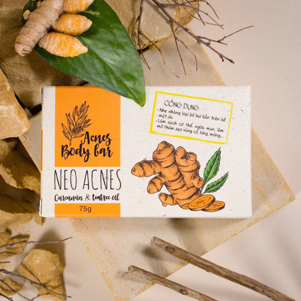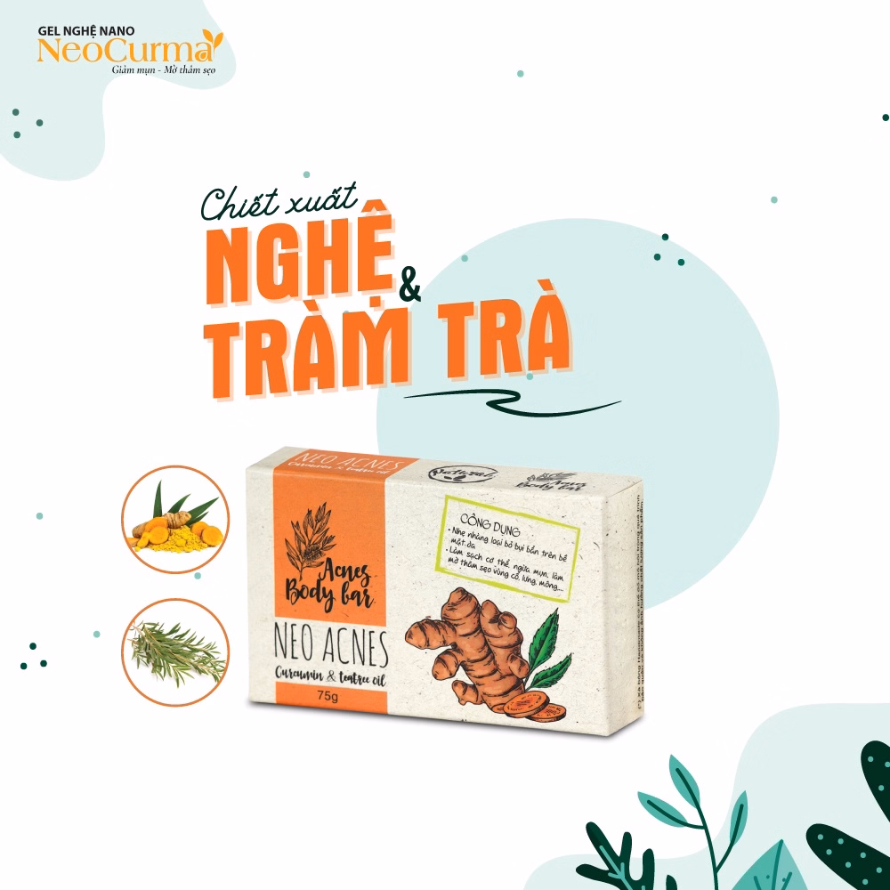 Tên sản phẩm: Xà Phòng Giảm Mụn Lưng Thiên Nhiên Cucurmin & Tràm Trà 75g – Neo Acnes