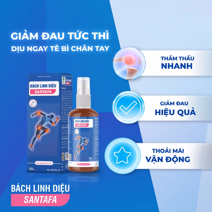 Xịt Bách Linh Diệu Santafa – Hỗ trợ giảm đau, giảm tê bì chi nhanh chóng – Chai 15ml