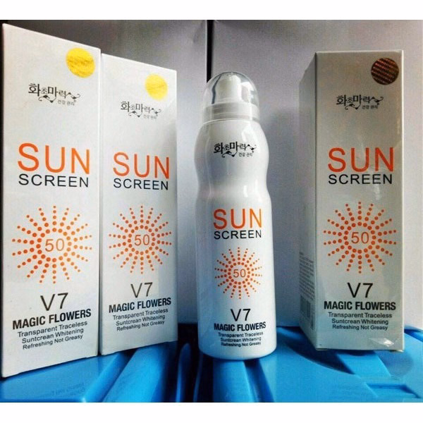 Xịt chống nắng Hàn Quốc Sun Screen V7 bảo vệ da bạn khỏi tia Uva / Uvb tác nhân gây tổn hại da với dạng màn sương nhẹ, thoáng khí. Công thức đặc biệt để bảo vệ tốt hơn kem chống nắng thường, tác dụng kéo dài trong suốt các hoạt động cả ngày.