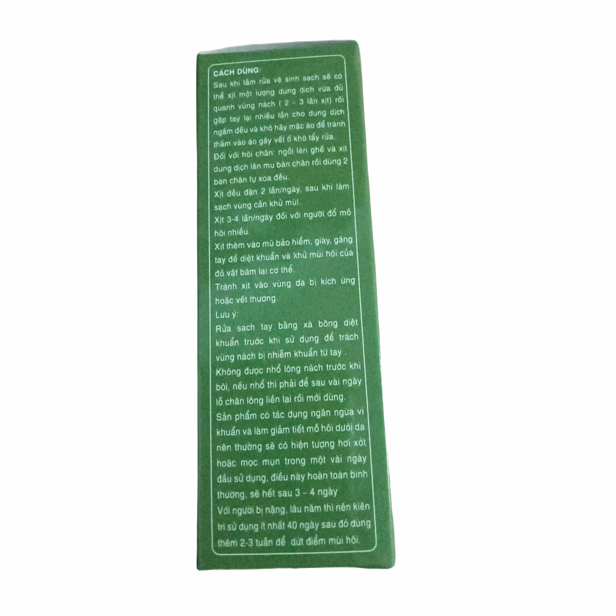 Sử dụng hôi nách dạng xịt ngày 2 lần, dùng 1 lọ thì khỏi hôi nách từ 8 tháng tới 1 năm.