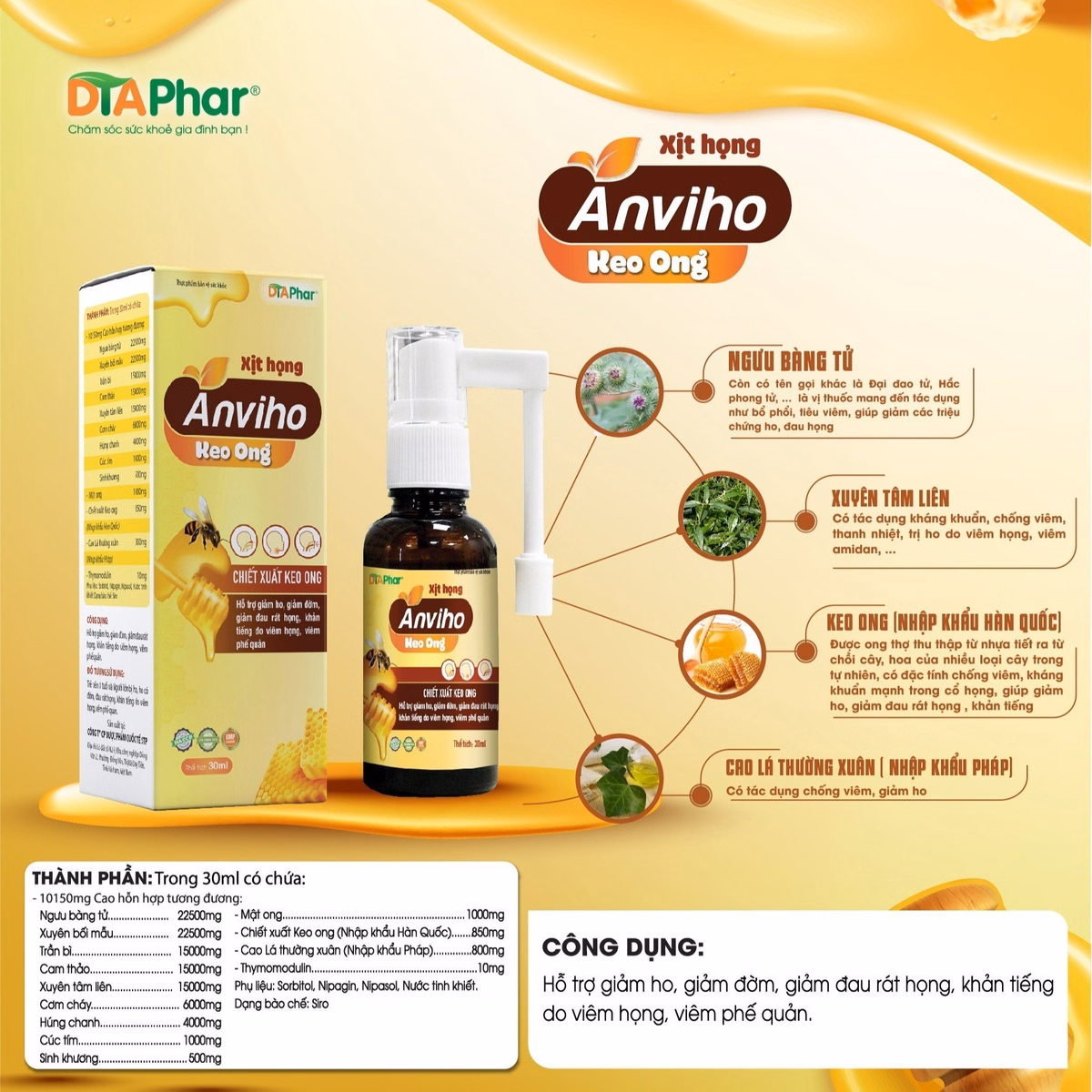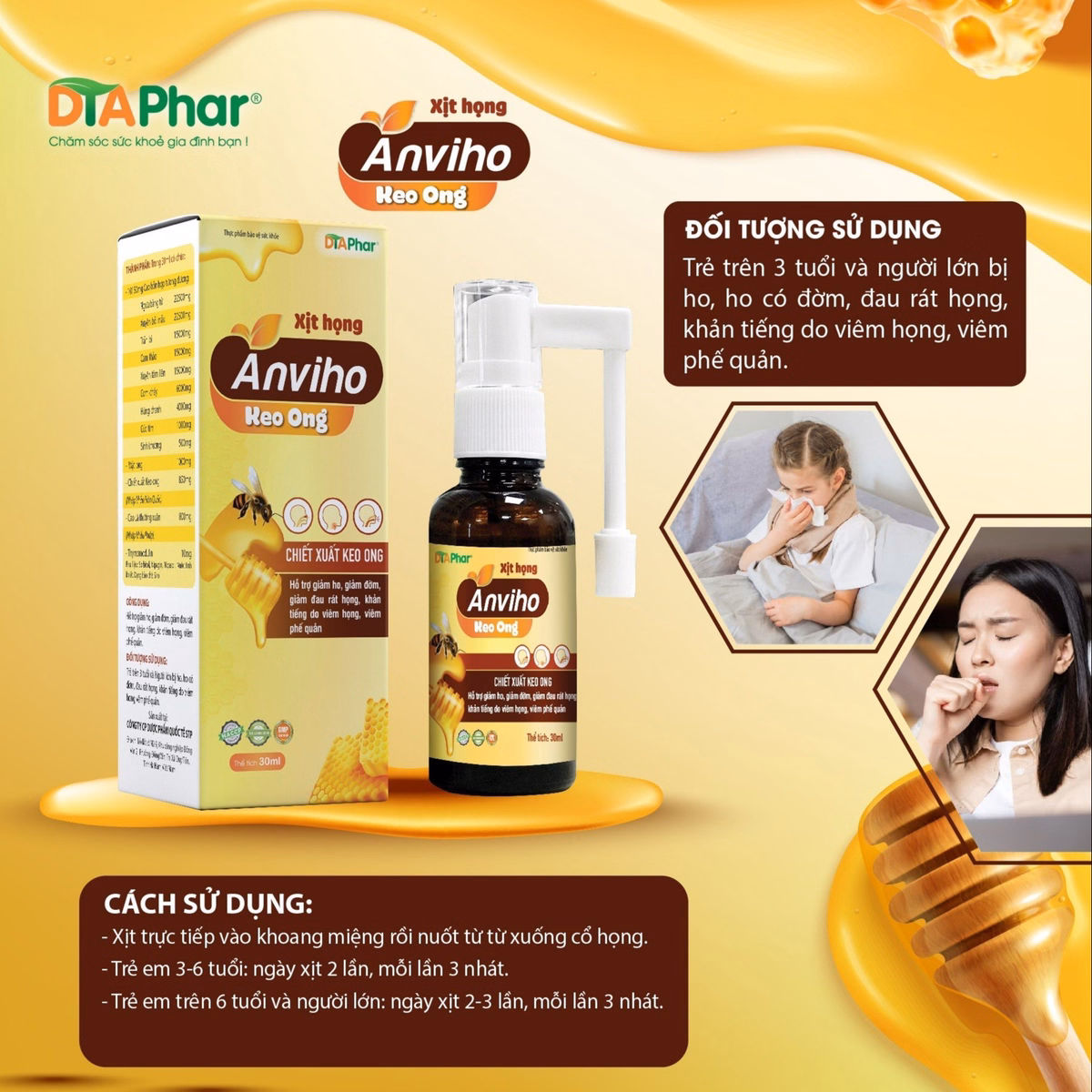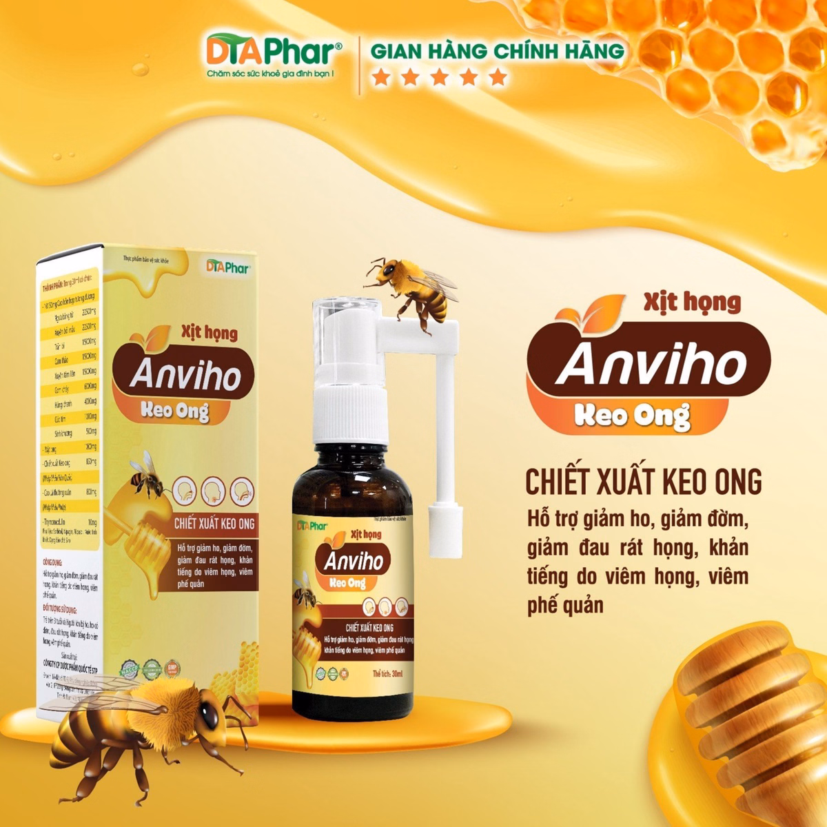 Xịt Họng Anviho Keo Ong Hỗ Trợ Giảm Ho Giảm Đờm Đau Rát Họng Khản Tiếng Do Ho Viêm Họng Viêm Phế Quản Chai 30Ml
