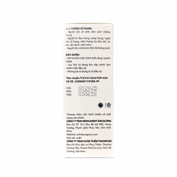 – Giúp làm sạch miệng, họng, làm dịu mát họng khi bị đau họng, sưng họng, ngứa rát cổ họng… góp phần mang lại cảm giác dễ chịu khi sử dụng.