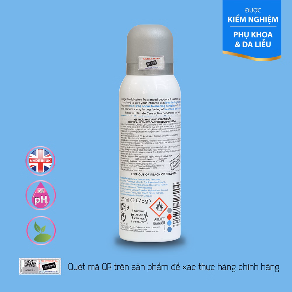 Tên sản phẩm: Xịt Khử Mùi Và Thơm Mát Vùng Kín Cao Cấp Ultimate Care Deodorant 125ml – Femfresh