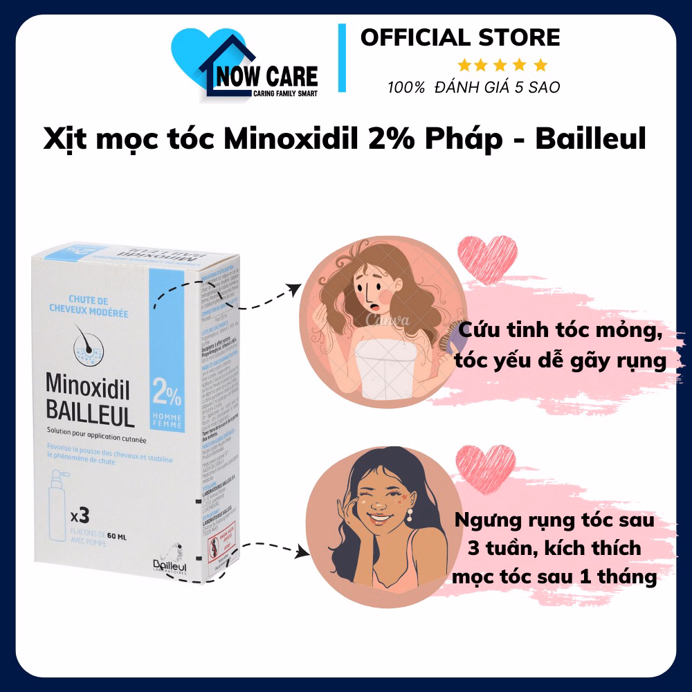 Xịt mọc tóc Minoxidil Bailleul 2% – giảm rụng tóc và kích thích mọc tóc