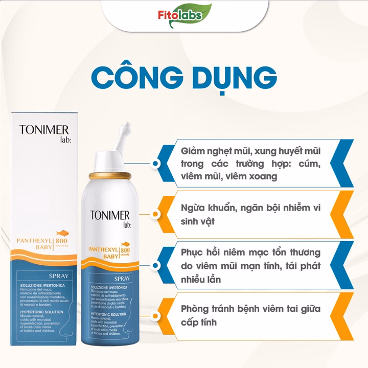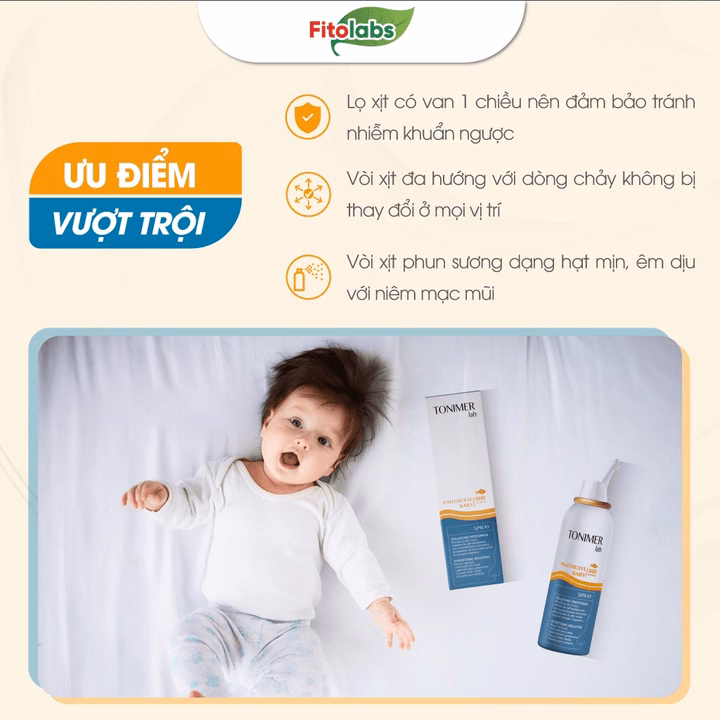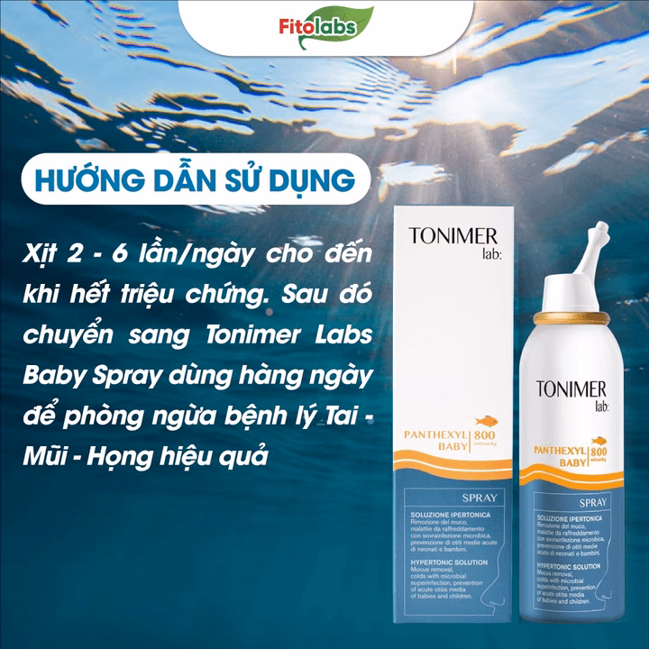 – Xịt 2-6 lần/ngày cho đến khi hết triệu chứng. Sau đó chuyển sang Tonimer Lab Baby Spray dùng hàng ngày để phòng ngừa bệnh lý Tai – Mũi – Họng hiệu quả.