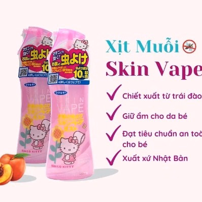 Xịt Chống Muỗi Và Côn Trùng Nhật Bản Skin Vape Hello Kitty được sản xuất trên dây chuyển công nghệ hiện đại ở Nhật Bản bằng nguyên liệu hoàn toàn từ tự nhiên với mùi hương nhẹ dịu đồng thời không chứa các chất gây kích ứng, chất tạo màu nên hoàn toàn có thể đảm bảo sự an toàn cho làn da nhạy cảm của trẻ nhỏ. Sản phẩm chai xịt chống muỗi và côn trùng đã được kiểm nghiệm y tế tại Nhật trước khi tung ra thị trường